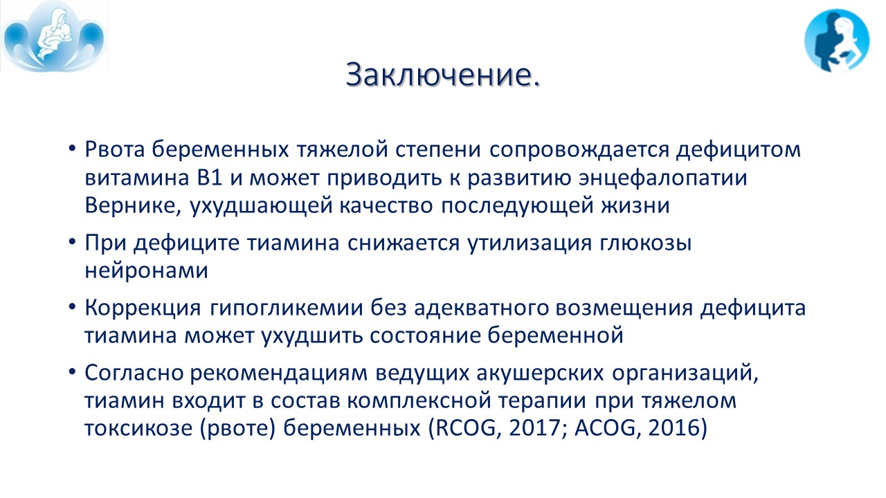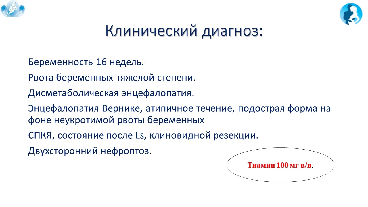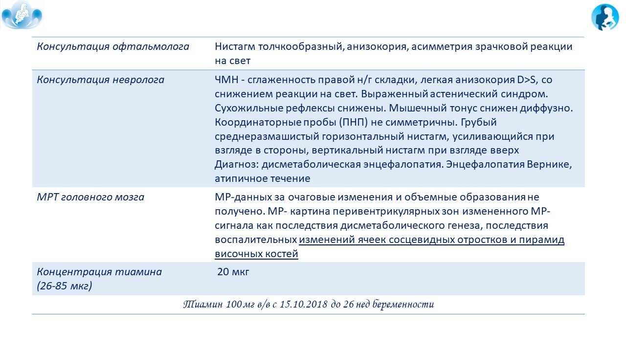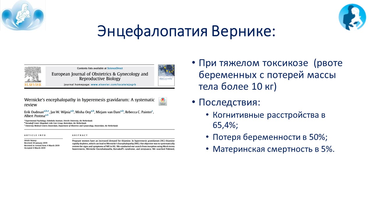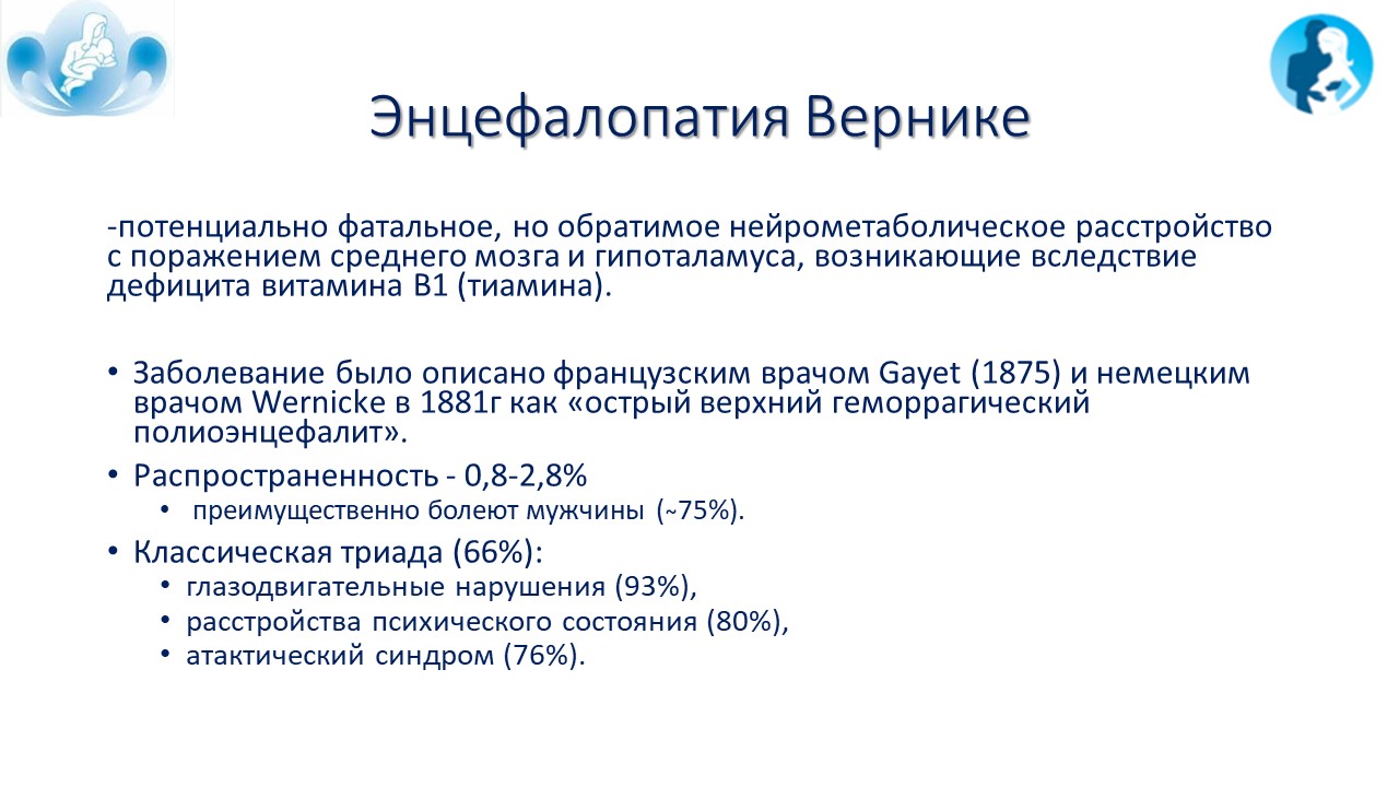 Энцефалопатия Вернике как редкое осложнение при тяжелом токсикозе беременных